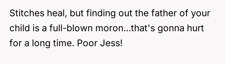 Jess, having endured a harrowing birth and the shadow of postpartum pain, stands on the edge of emotional collapse, craving nothing more than reassurance and unwavering support.