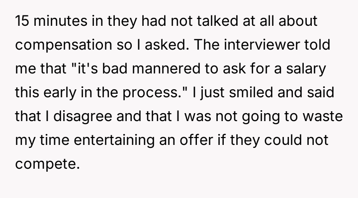 This firm stance directly conflicts with the traditional expectations of some employers, particularly in startup culture, who view early salary discussion as unprofessional or premature, leading to high-stakes confrontations.