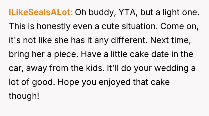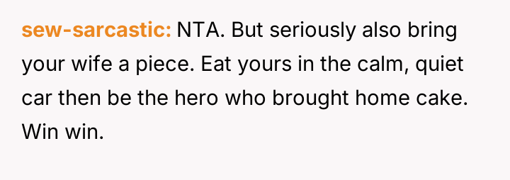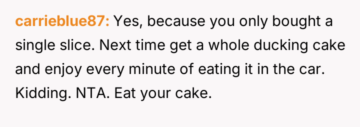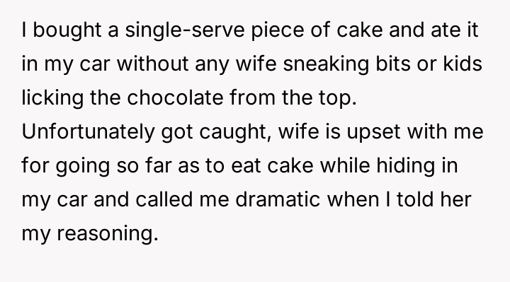 AITA for eating cake in my car so I didn't have to share with my wife and kids?