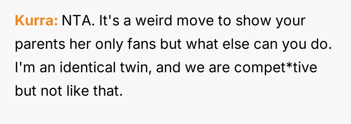 Was the OP justified in immediately involving their parents to stop the use of her identity on a compromising platform, or did revealing the profile constitute an unforgivable betrayal of her twin's privacy and financial means?
