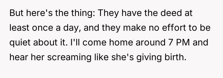 Sharing a space with a roommate whose boyfriend practically lives there, she endures the constant disruption of their uninhibited passion, a relentless reminder of boundaries blurred and respect tested.
