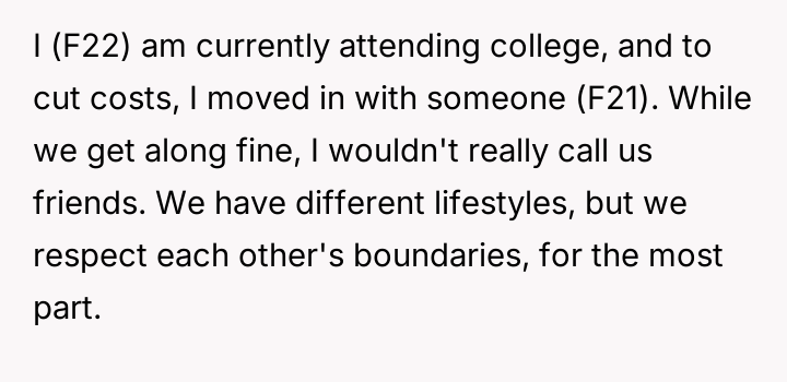 In the quiet chaos of college life, a young woman finds herself caught between the need for affordable housing and the invasion of her sanctuary.