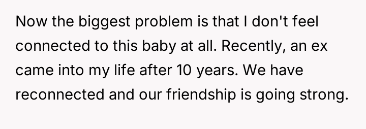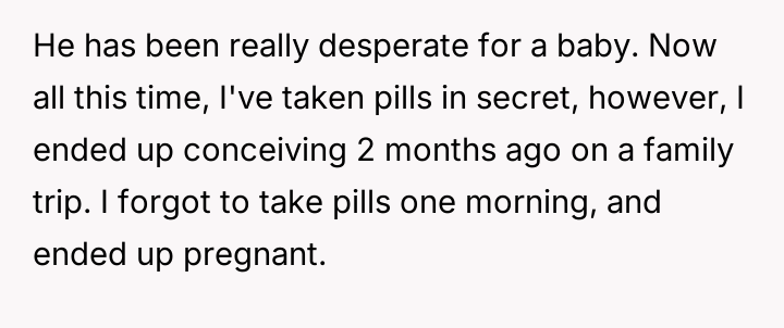 Her decision to secretly conceive while using contraception, followed by the realization that she no longer desires a future with her husband, places her in a difficult ethical position regarding honesty versus inflicting pain.
