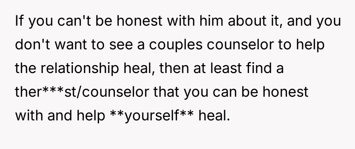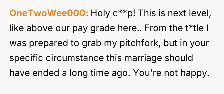 The original poster is facing a profound personal conflict, torn between maintaining a painful marriage under false pretenses and seeking personal truth through separation and abortion.
