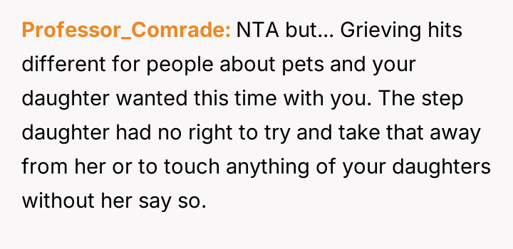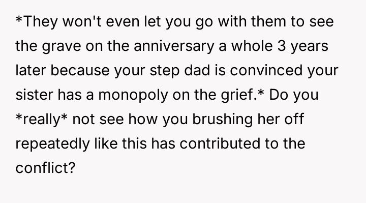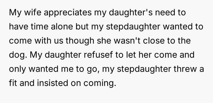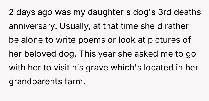The original poster (OP) is facing a conflict between honoring his biological daughter's specific emotional need for a private memorial and managing his stepdaughter's intense reaction to feeling excluded.