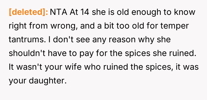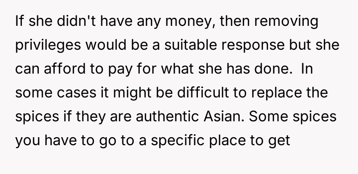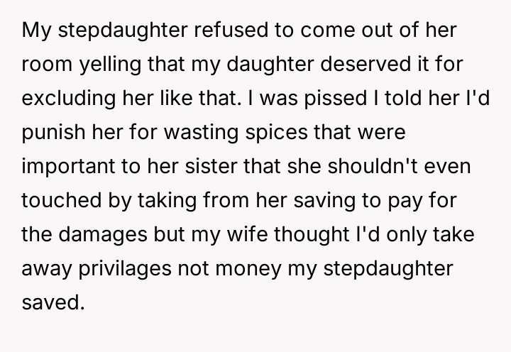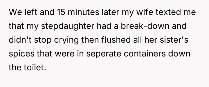 AITA for how I punished my stepdaughter for flushing her sister's spices down the toilet?