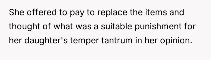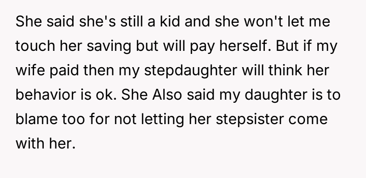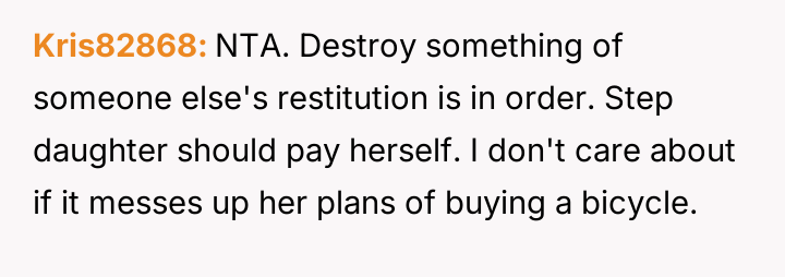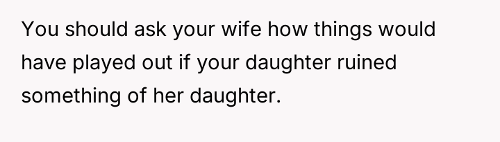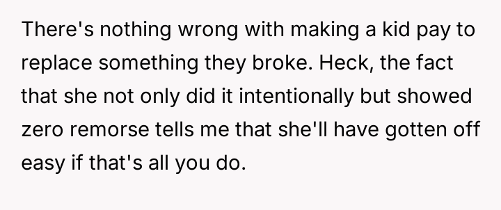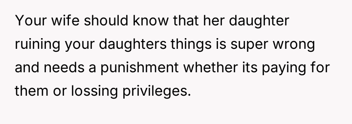 Should the financial responsibility for the destroyed property fall directly on the stepdaughter to address the severity of her actions, or is the wife correct that removing saved money is too harsh for a minor, potentially risking deeper resentment over the punishment itself?
