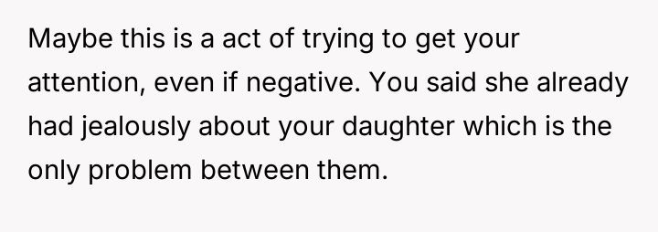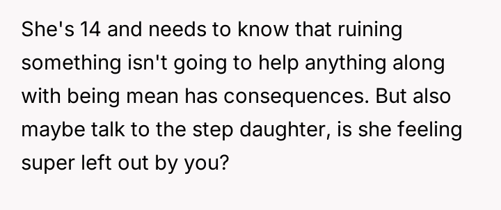 The OP chose to support his daughter's request for space, which resulted in the stepdaughter destroying property belonging to the sister, leading to a significant disagreement with the wife regarding appropriate disciplinary action.