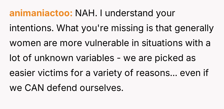 His action, intended as protective, was interpreted by her as abandonment and neglect of her safety, leading to significant emotional distress.