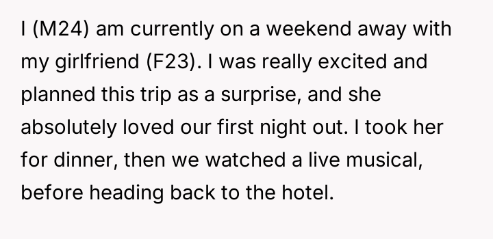 He had planned the weekend getaway as a heartfelt surprise, eager to create unforgettable memories with his girlfriend.