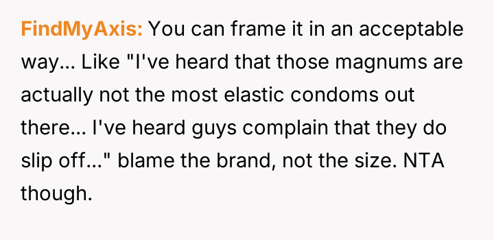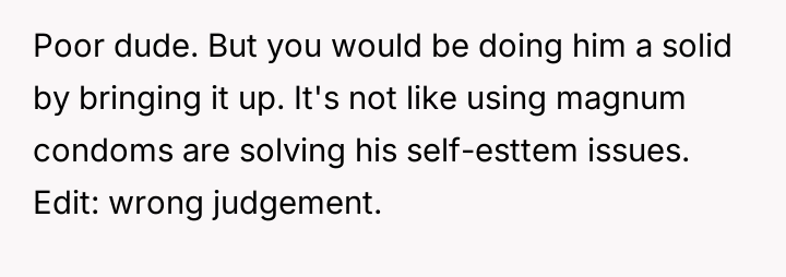 WIBTA if i told my roommate that he absolutely should not be using Magnum condoms?
