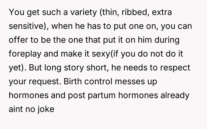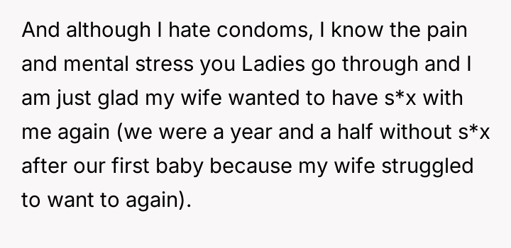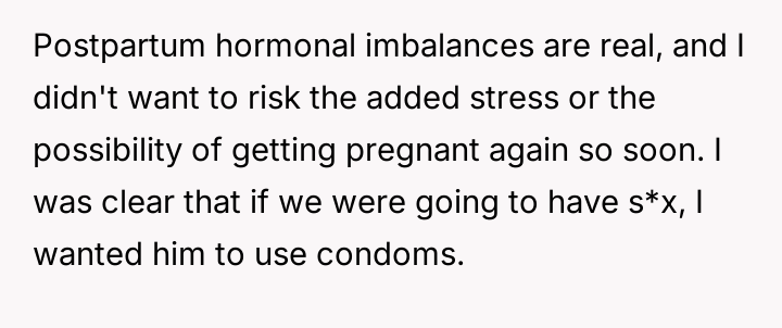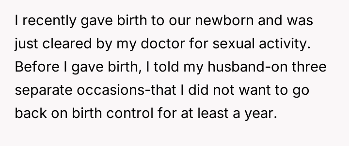 She had just brought new life into the world, her body still healing, her heart vulnerable, and she made her boundaries clear—no birth control for at least a year, and condoms if they were to be intimate.