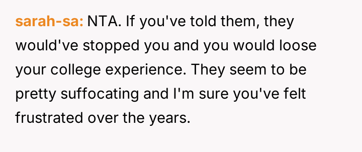 AITA for not telling my parents that I am going to a college states and states away from them?