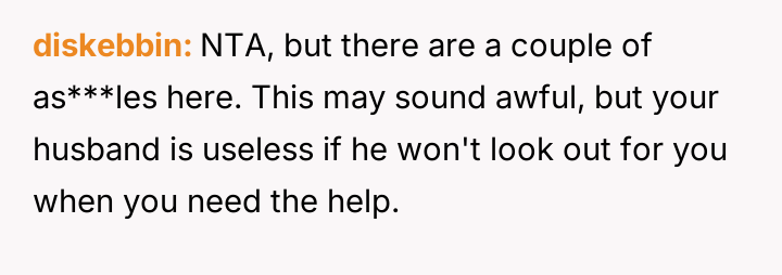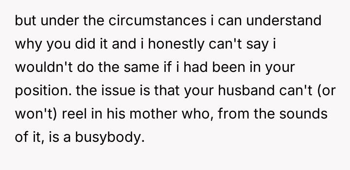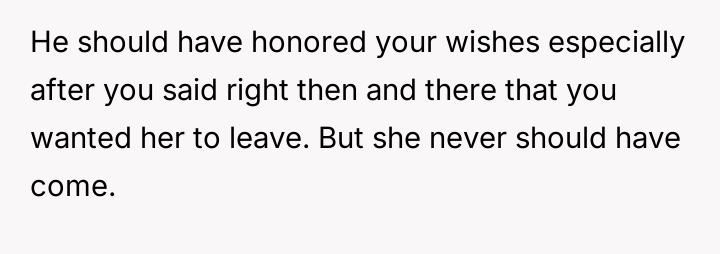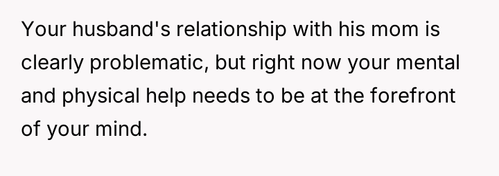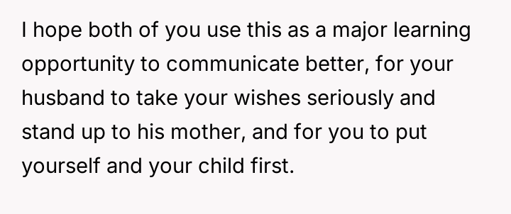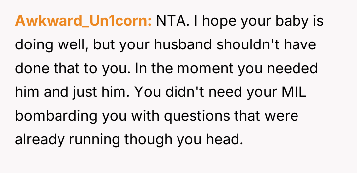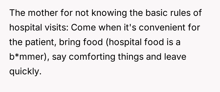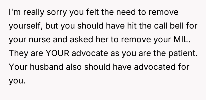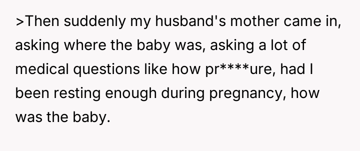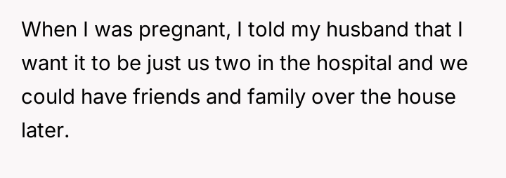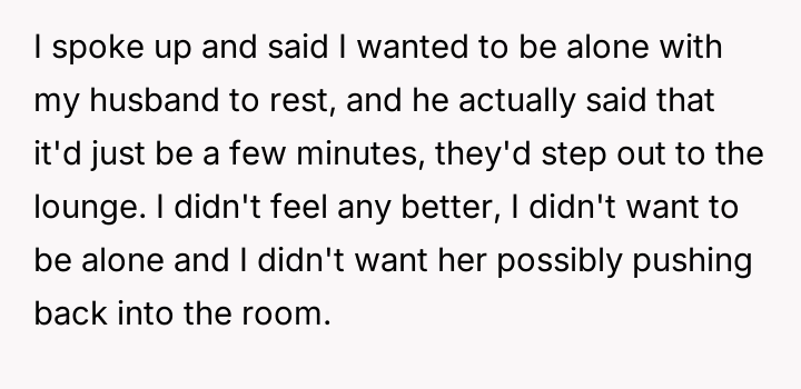 The central conflict arises because the husband prioritized his mother's presence and concern over the OP's explicit request for privacy and rest during a moment of extreme vulnerability.