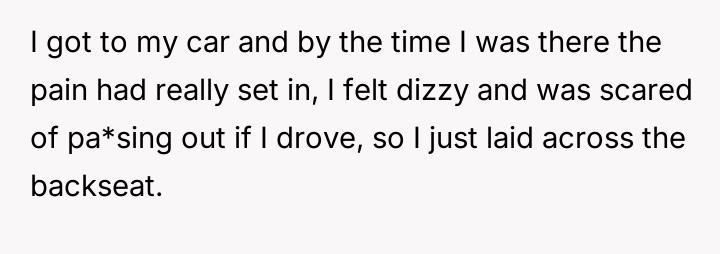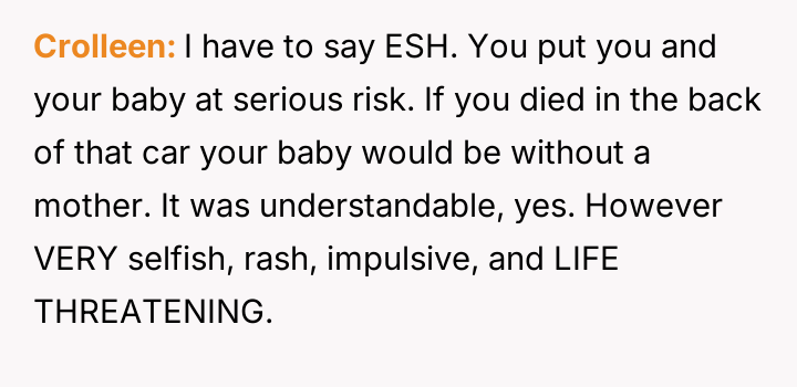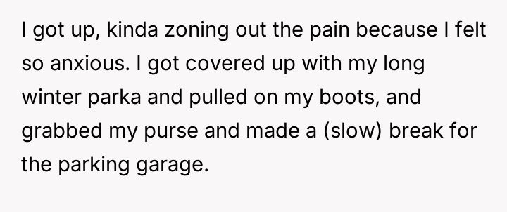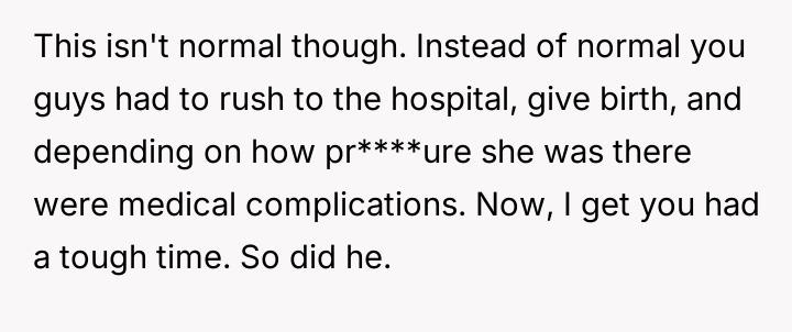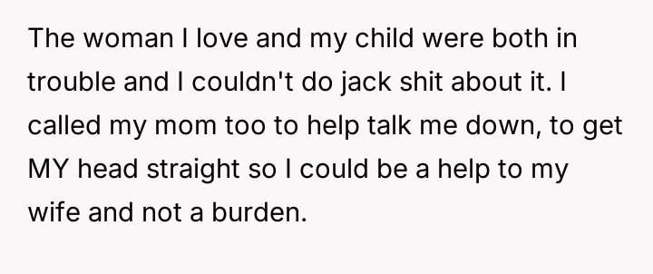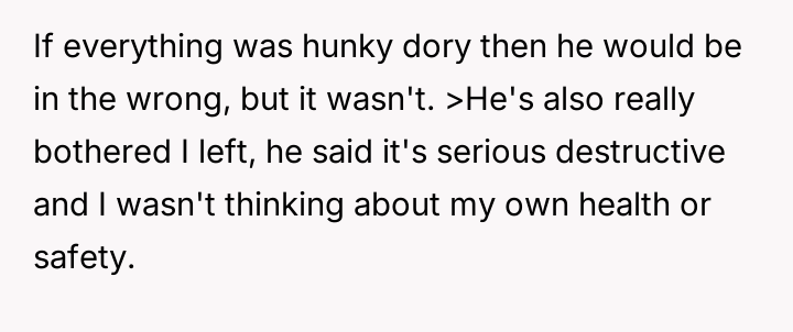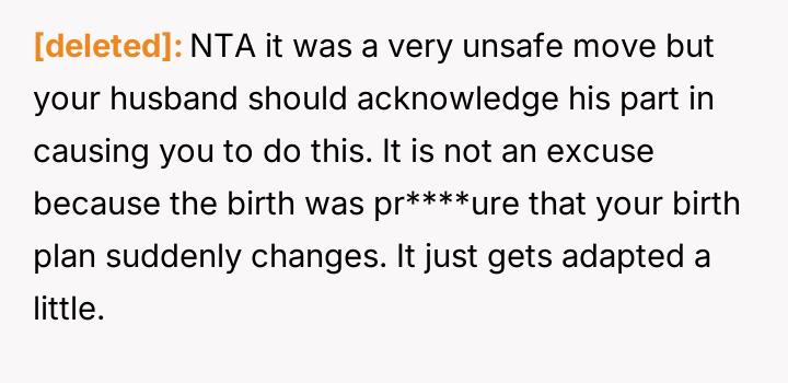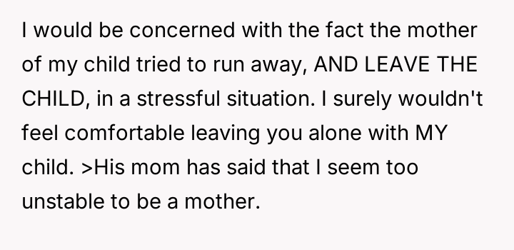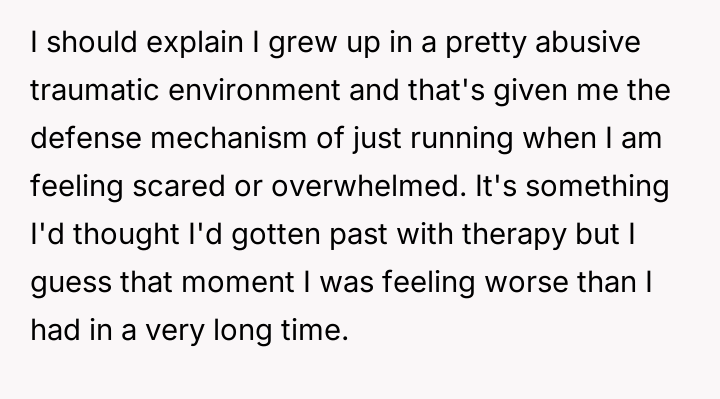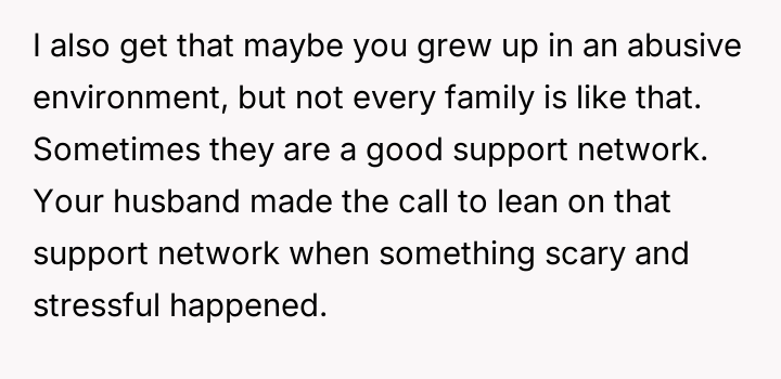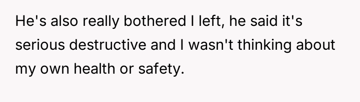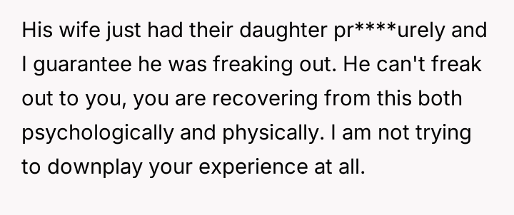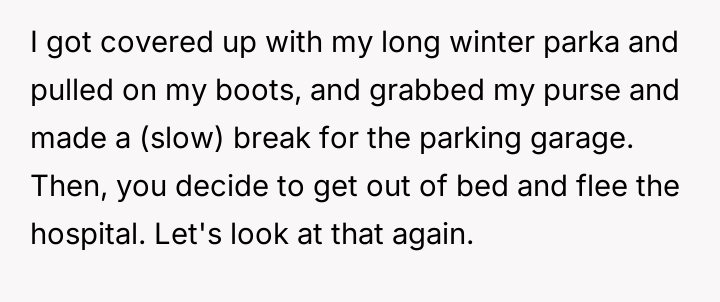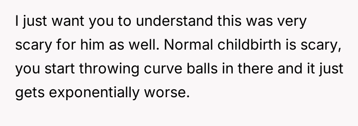 The OP reacted to this overwhelming situation by fleeing the hospital, a trauma response that the husband views as destructive rather than a manifestation of fear and anxiety.