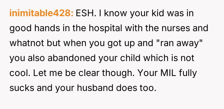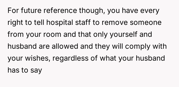 AITA for walking out of the hospital very soon after giving birth when my husband brought his mom in?