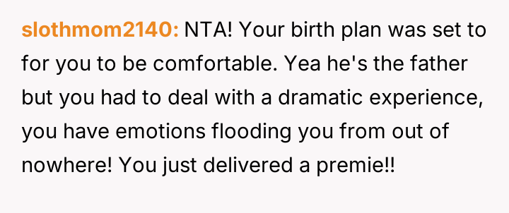 The original poster (OP) experienced a highly stressful and painful premature birth, violating their prior agreement with their husband about hospital visitors.