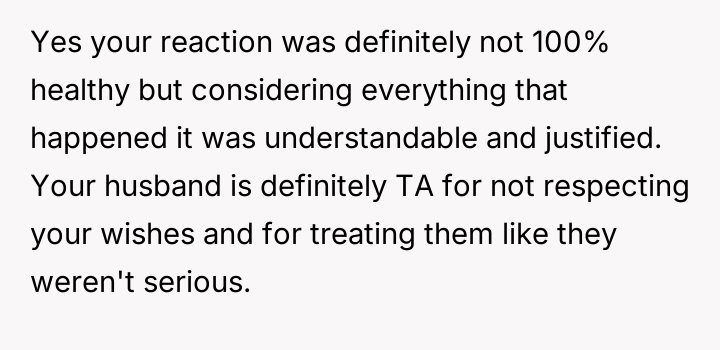 The debate centers on whether the husband's failure to enforce boundaries supersedes the OP's right to manage their trauma response, even if that response was physically risky.
