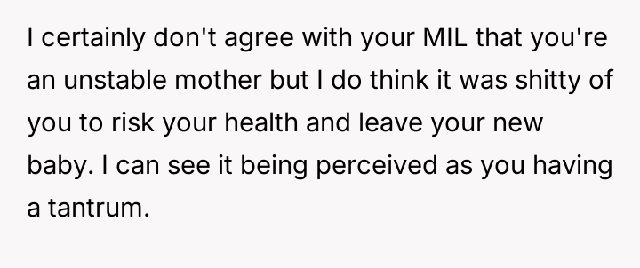 Was the OP justified in leaving the hospital as an immediate response to feeling unsupported and overwhelmed after a traumatic birth, or did this action cross a line into dangerous self-neglect?