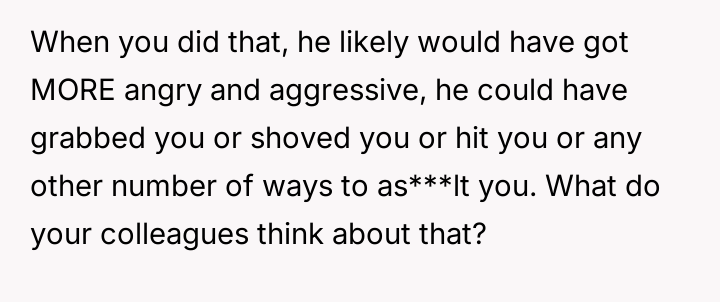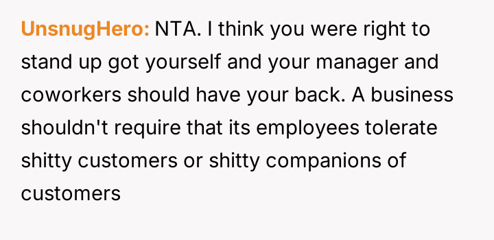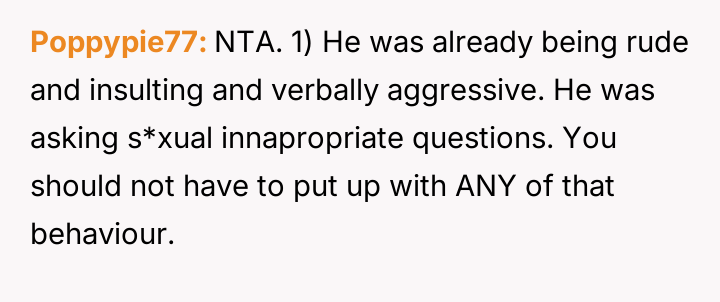 The OP reacted by setting a boundary against inappropriate questioning, which led to the boyfriend escalating the conflict and ultimately causing the client to leave without the intended service.