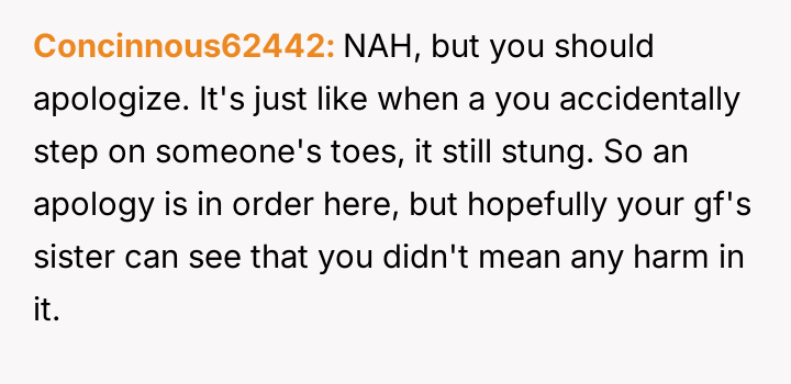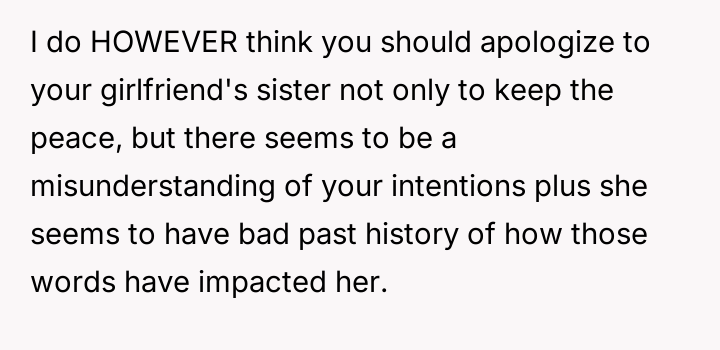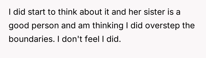 Should the OP apologize to the sister to mend professional and personal ties, or was his action a reasonable response to an immediate social situation?