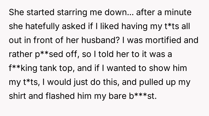 In a moment of heated defiance, she crossed a line she never intended to, flashing her husband’s father in a raw burst of anger and embarrassment.