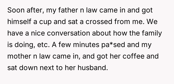When the husband's parents arrived for a week-long stay, an ordinary morning coffee turned into a chilling confrontation.
