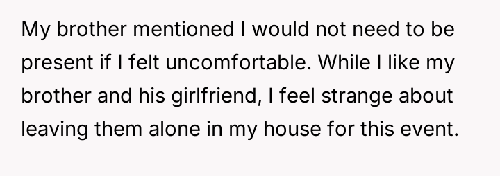 Behind the request lies a silent tension, a struggle between respecting his brother's unconventional choices and grappling with the uncertainty of what that means for the sanctity of his own space.