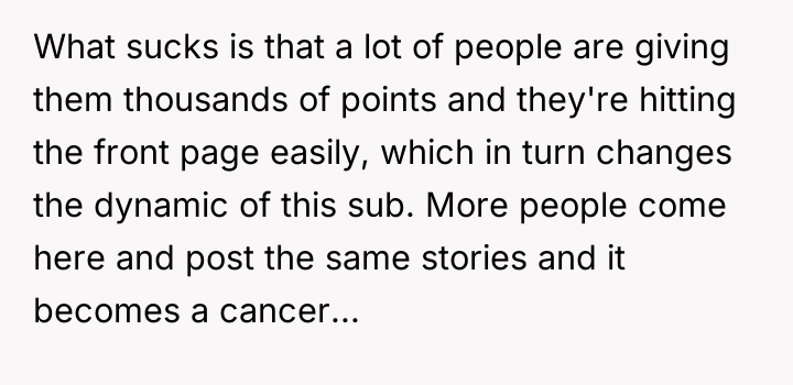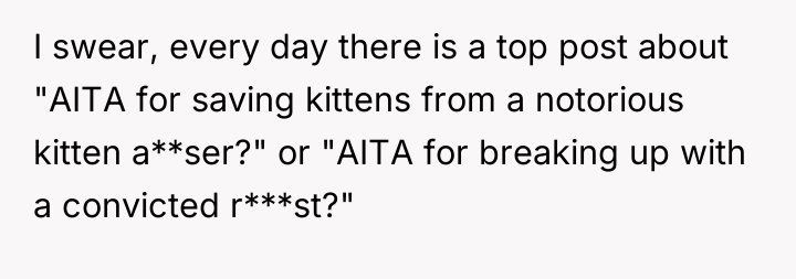 The original poster expresses significant frustration with the perceived simplicity and lack of genuine moral complexity in many common "Am I The Asshole" (AITA) posts, viewing them as obvious situations where the poster is clearly not in the wrong.