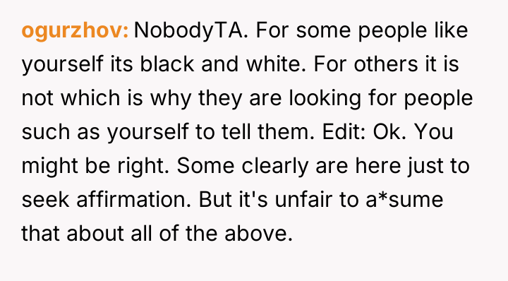 The community had thoughts — lots of them. From tough love to thoughtful advice, the comment section didn’t disappoint.