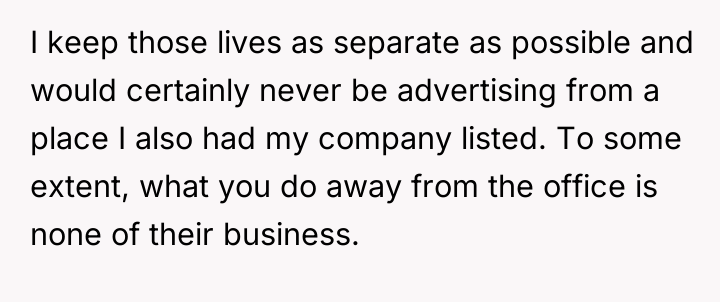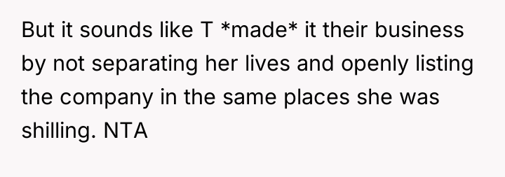 Although the OP mentioned T's side hustle to a manager, the manager ultimately investigated and terminated T based on the professional optics of T's public social media activity.