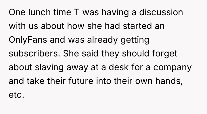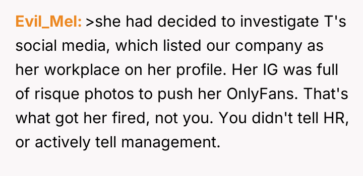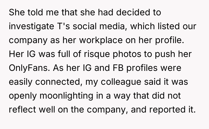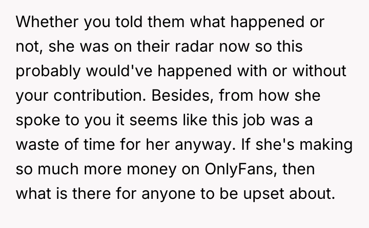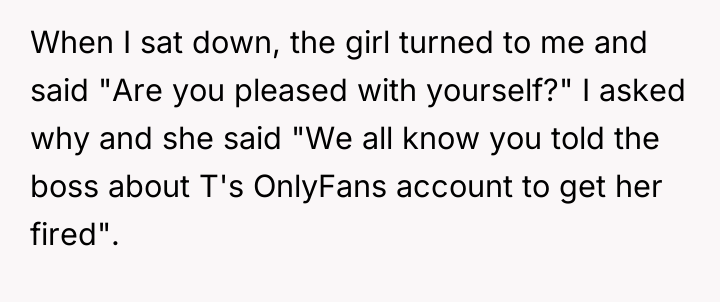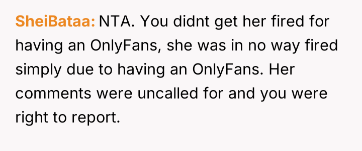 AITA for getting a girl at work fired for having an OnlyFans account?