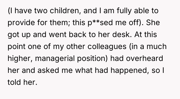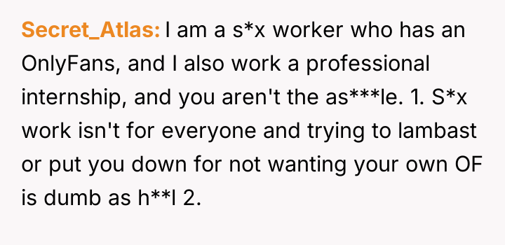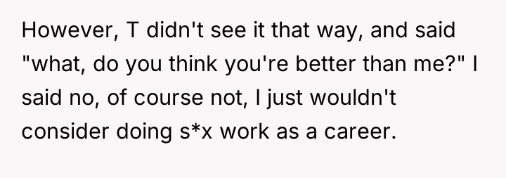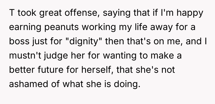 The conflict originated from T aggressively pushing the OP to start an OnlyFans account, leading to a heated exchange where T made personal attacks regarding the OP's perceived lack of ambition and ability to provide for her children.