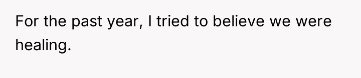 Despite promises, tears, and therapy, the wounds festered beneath the surface, masked by fragile hope. But on Valentine’s Day, alone and worn thin, the illusion of healing crumbled, exposing the raw pain of a love stretched beyond its limits.