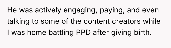 While she battled postpartum depression and poured herself into their newborn, he was lost in a web of betrayal, choosing virtual fantasies over their reality.
