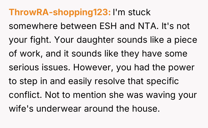 The central conflict arises when the OP's reaction—laughing during a serious accusation involving misplaced intimate apparel—invalidates the daughter's distress and further fractures family trust.