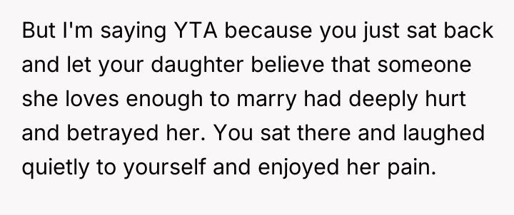 Given the OP's acknowledgment of stress versus the daughter's intense emotional reaction and the fiancé's departure, the core question remains: When parental housing assistance ends, is it justifiable for a parent to react with amusement to a high-stakes emotional conflict between their adult child and partner, or does such a reaction constitute an unacceptable breach of emotional support?