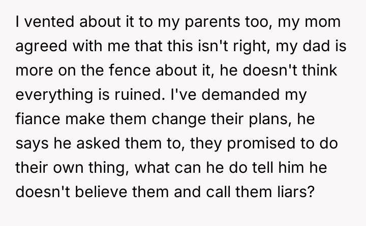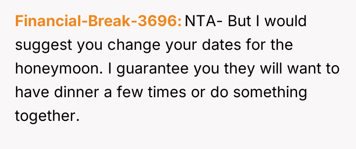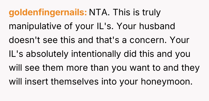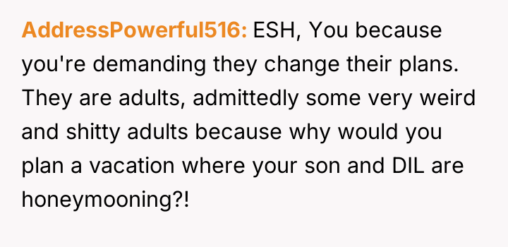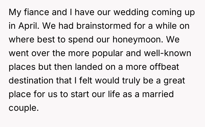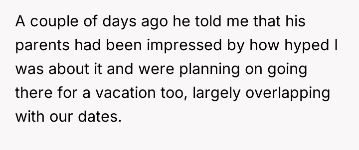 AITA for demanding that my fiancé's parents change their plans to have a vacation at the same place as our honeymoon?