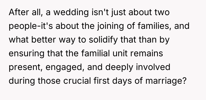 The bride felt a surge of heartbreak and frustration, her hopes for a private beginning to their marriage slipping through her fingers.