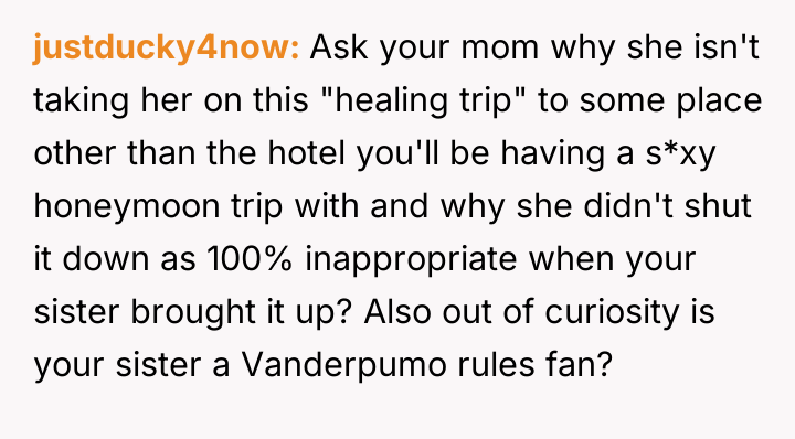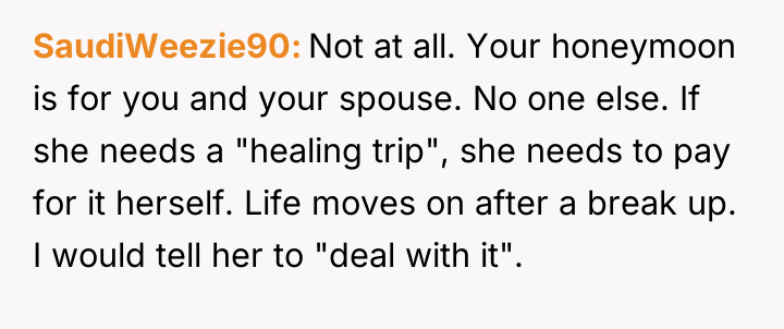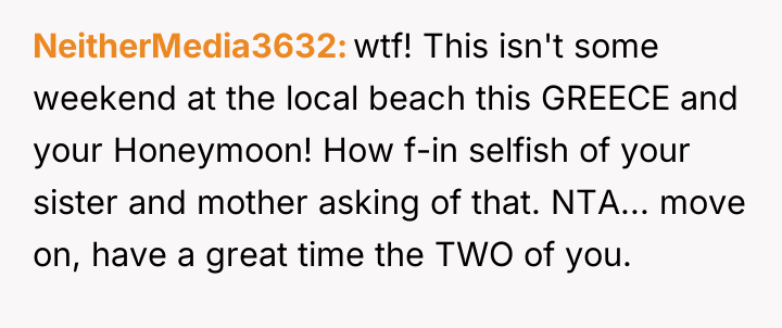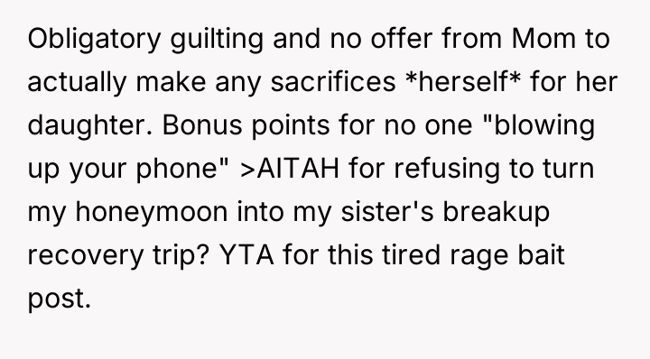 AITAH for refusing to let my sister use my honeymoon as her "healing trip" after she got dumped?