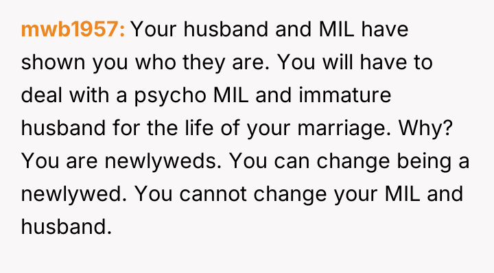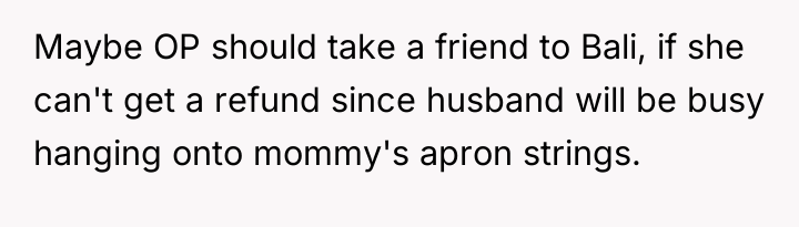 The OP responded by canceling the trip entirely, viewing this action as a necessary defense of her new marriage against perceived manipulation by her husband and mother-in-law.
