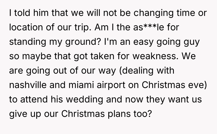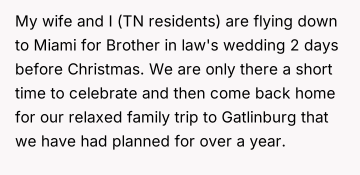 AITA brother in law asked my family to move our Christmas vacation we had planned after they (him and fiance) decided to honeymoon in the same city at same time.