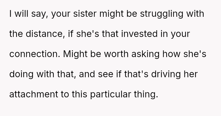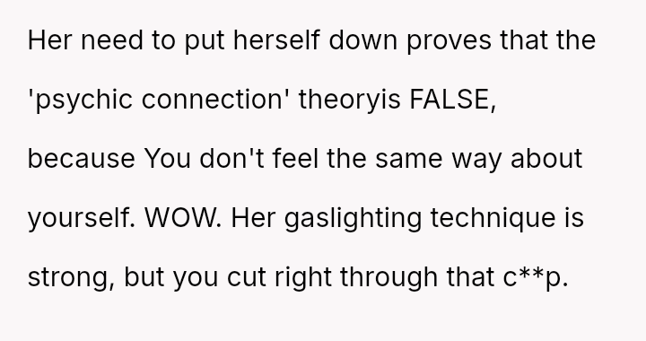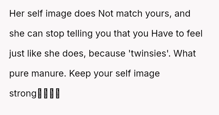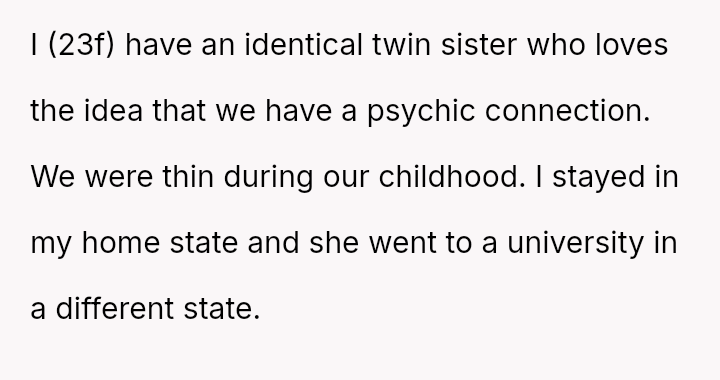 The original poster is navigating a difficult conflict where her desire to stop using a specific, negative label for herself and her sister clashes directly with her twin's strong emotional attachment to the idea of their shared physical experience and supposed psychic connection.