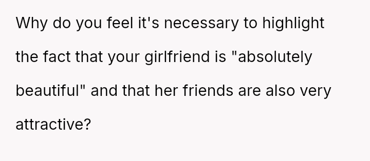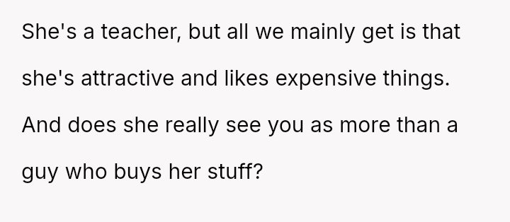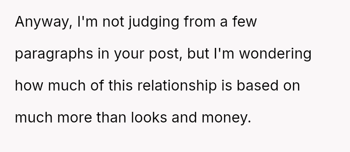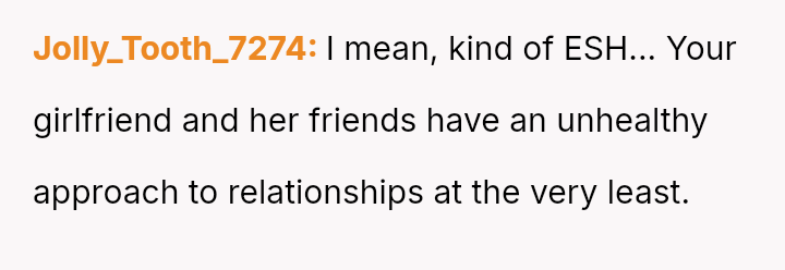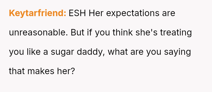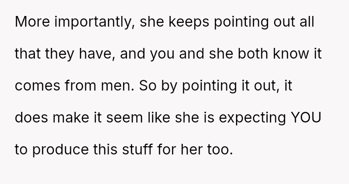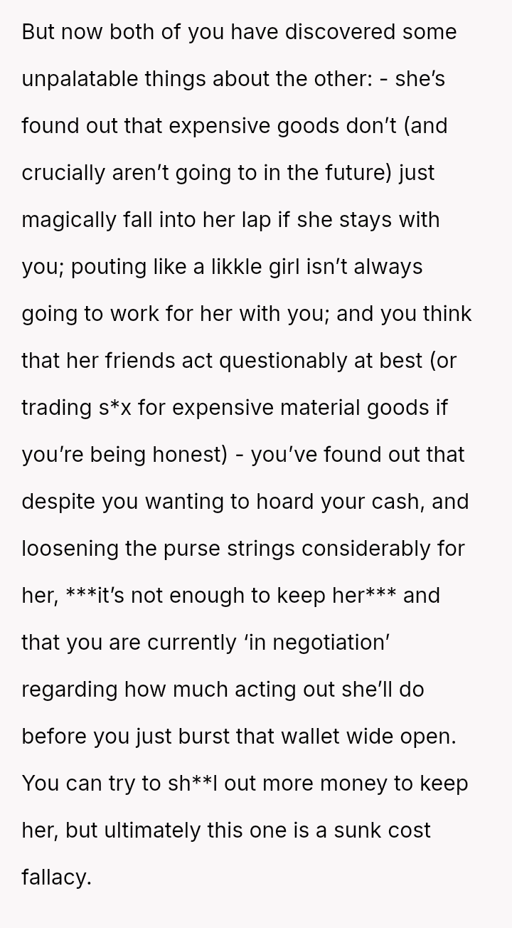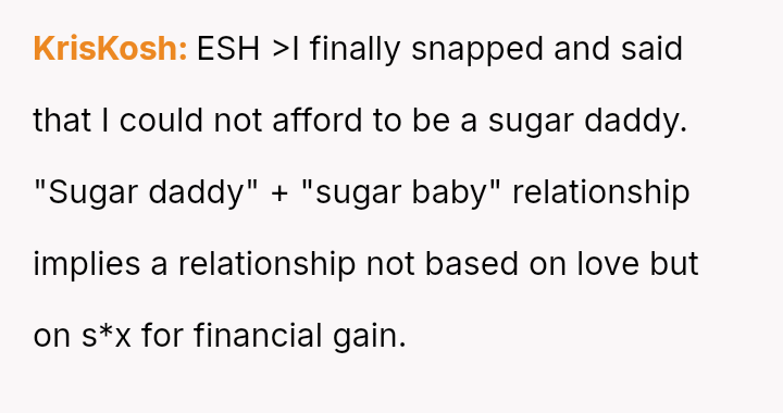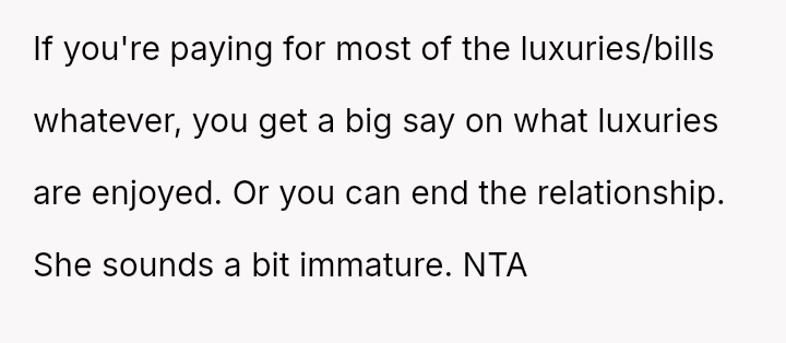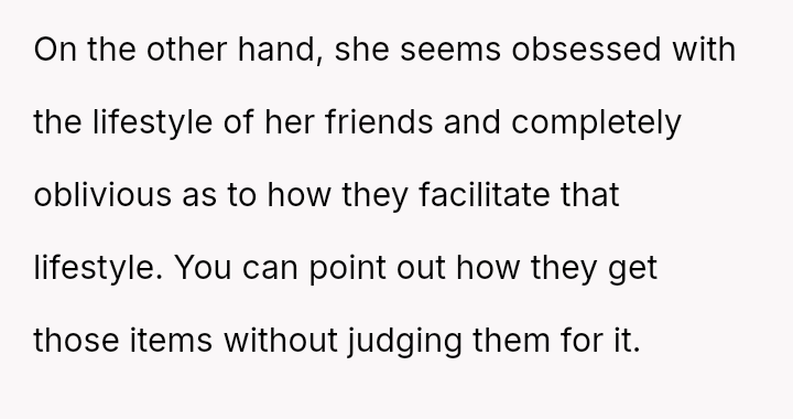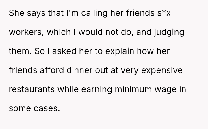 The core issue revolves around the girlfriend's apparent desire for a lifestyle that mirrors that of her friends, funded by external admirers, which the OP refuses to emulate.