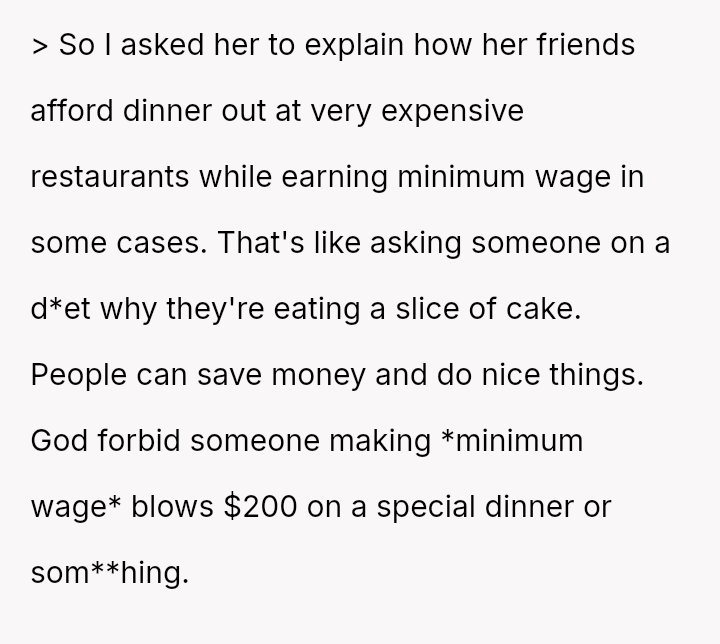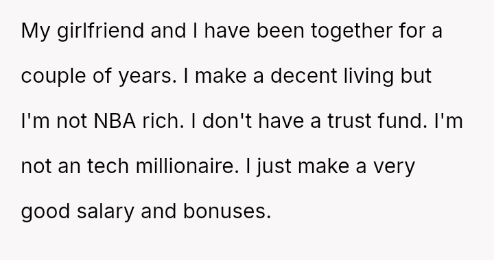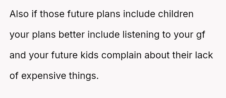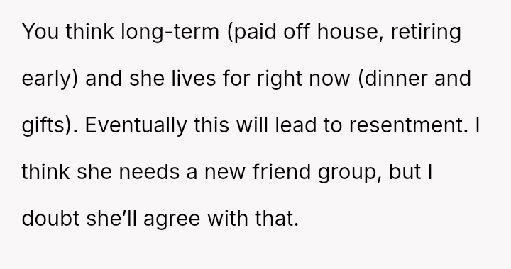 Should the girlfriend continue to value the material advantages provided by the lifestyles of her friends over the OP's es**blished financial prudence and commitment to their shared future, or is the OP's firm boundary against supporting an unsustainable, comparison-driven lifestyle the necessary foundation for a healthy partnership?