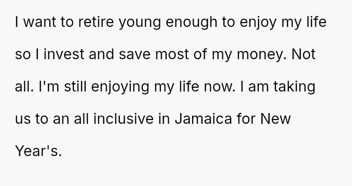 He feels justified in protecting his financial goals by prioritizing saving and investing over the lavish spending habits displayed by his girlfriend's friends, which has led to tension in the relationship.