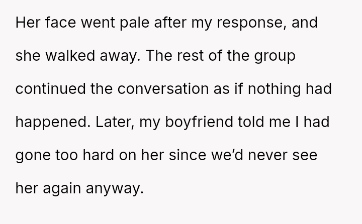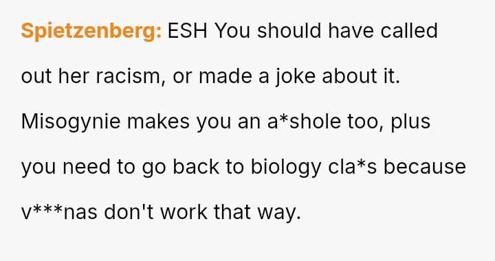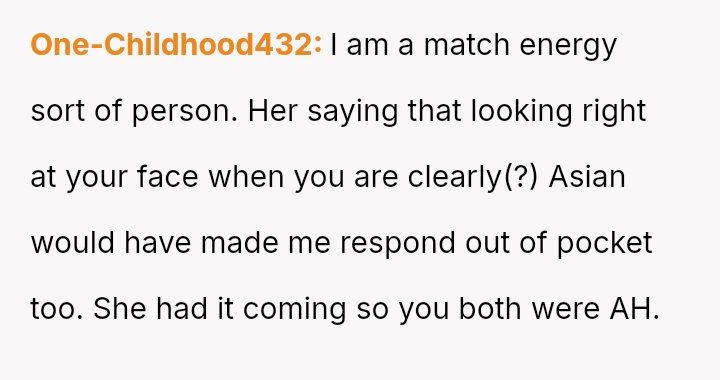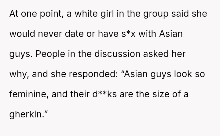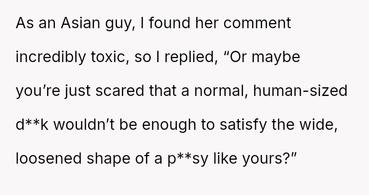 The original poster experienced a direct, personal attack regarding his ethnicity and perceived masculinity, leading him to respond with an equally sharp and offensive retort that caused the other person to leave the group.