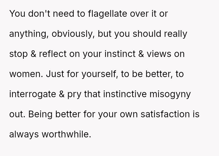 His core conflict lies between his feeling of needing to defend his dignity against prejudice and his boyfriend's perception that such a strong reaction was unnecessary given the transient nature of the encounter.