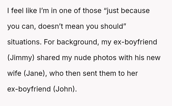 Her ex-boyfriend, Jimmy, shatters the sanct*ty of trust by sharing her nude photos with his new wife, Jane, who then spreads them further, turning private pain into public torment.