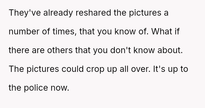 Given that the non-consensual sharing of explicit images has occurred twice after initial discovery, does the severity of the v***ation and the demonstrated pattern of disregard outweigh the consideration that the perpetrators are young adults who may regret their actions, thereby justifying the continuation of the police investigation?